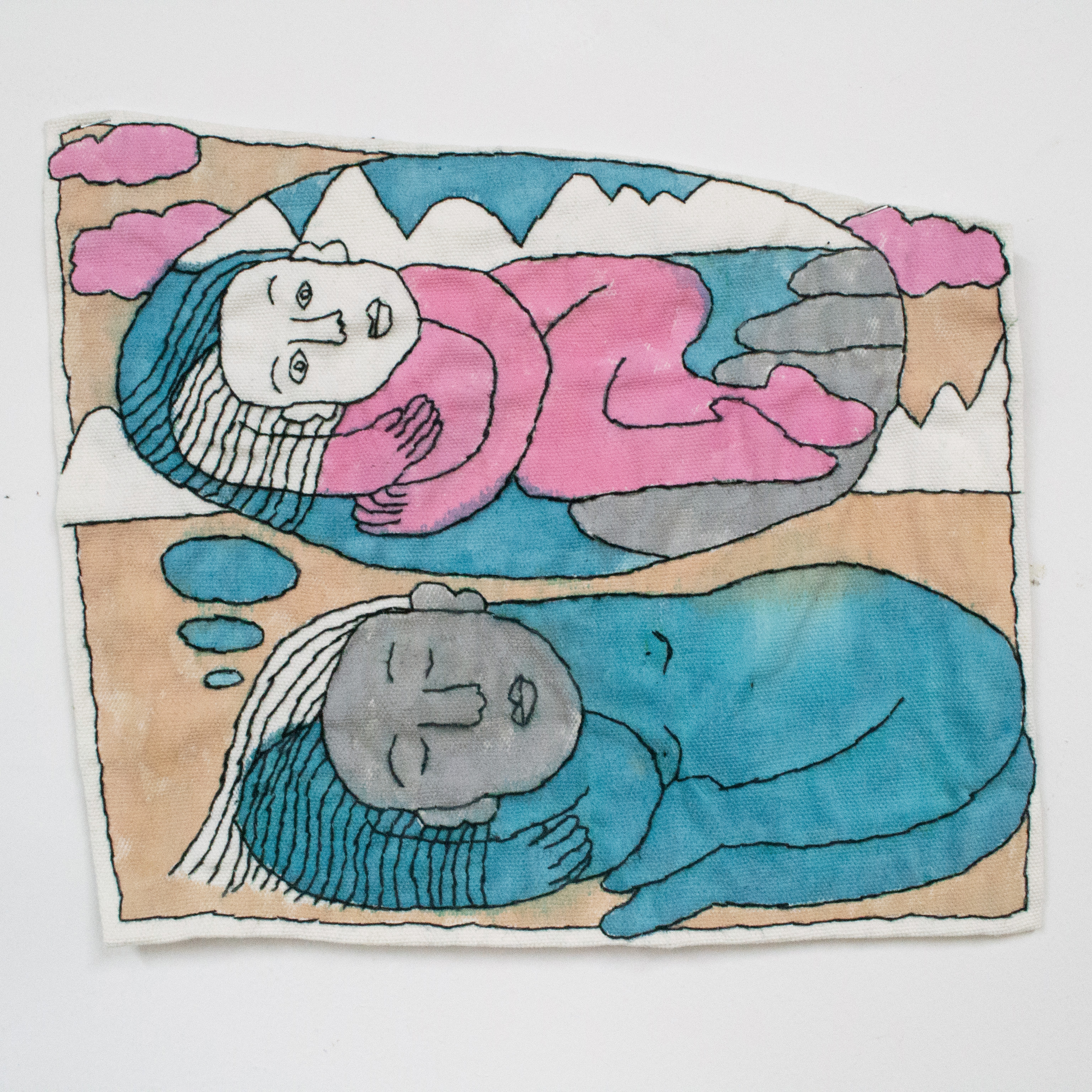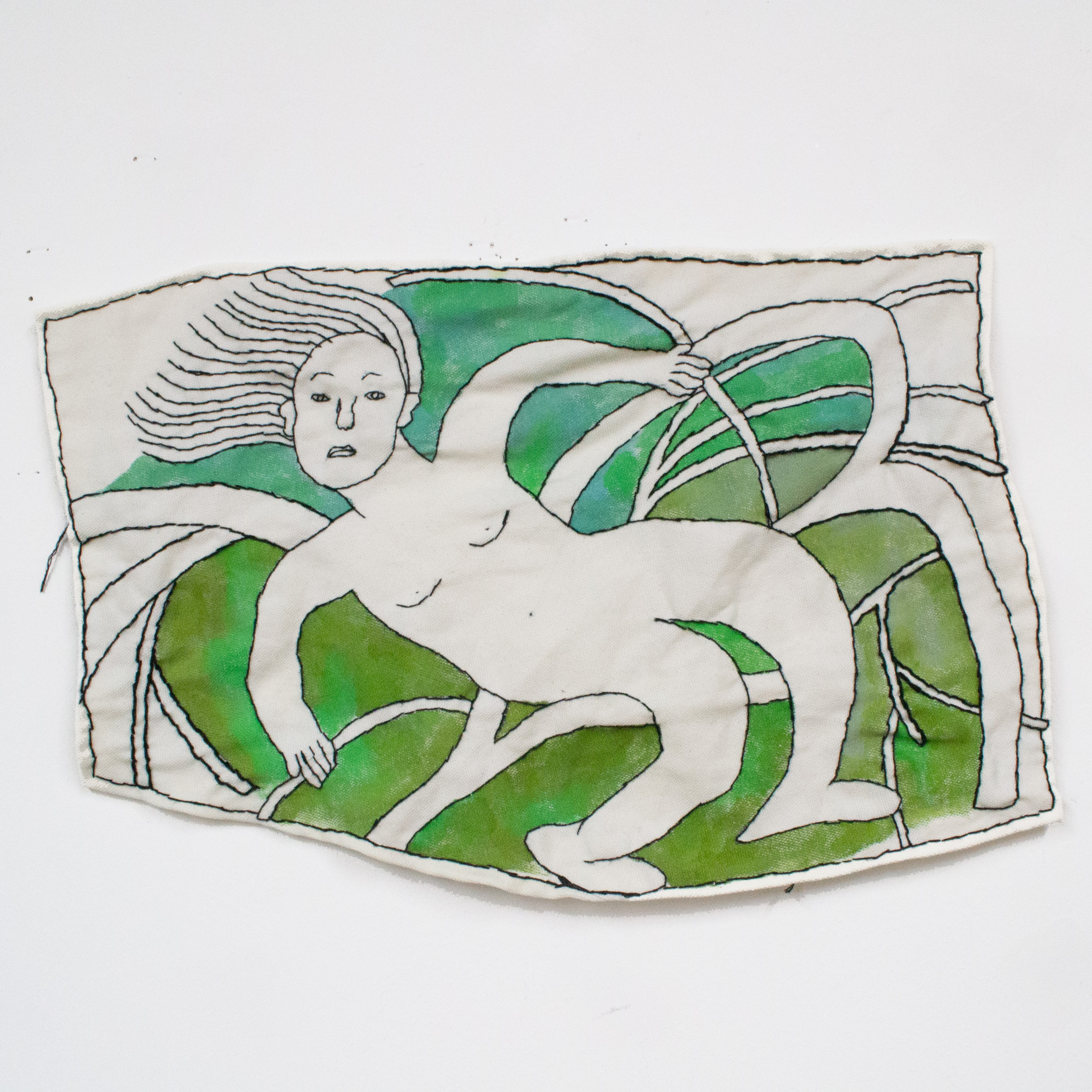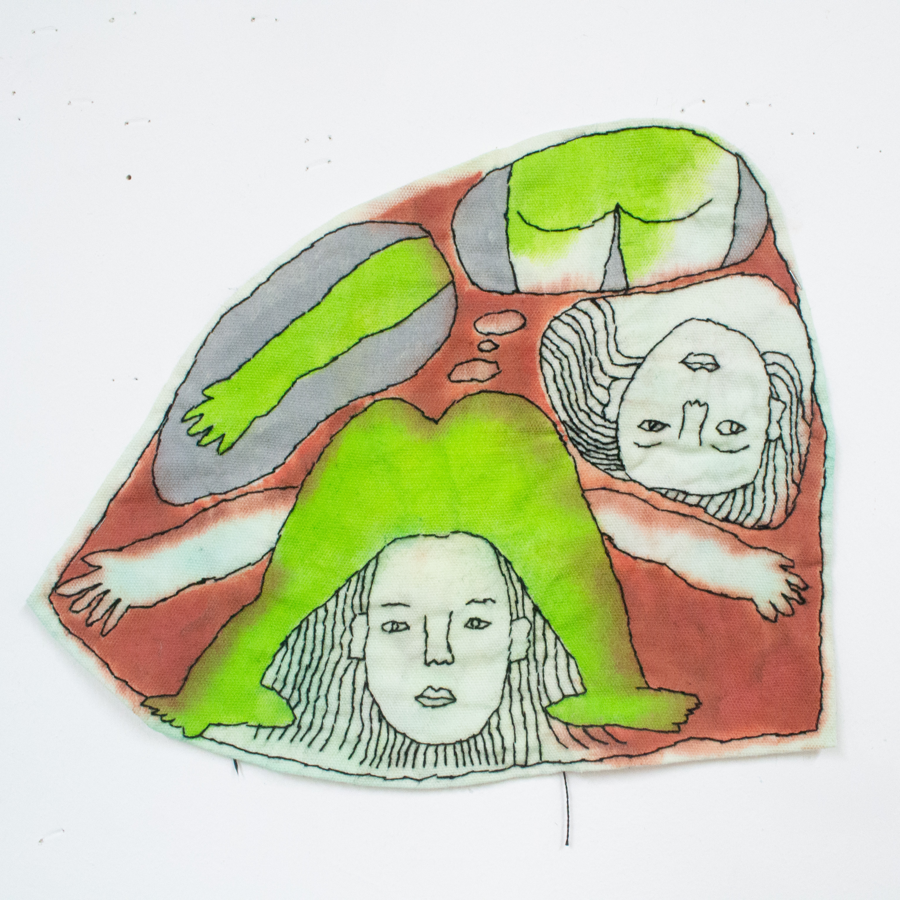 hand stitching and ink on cotton
