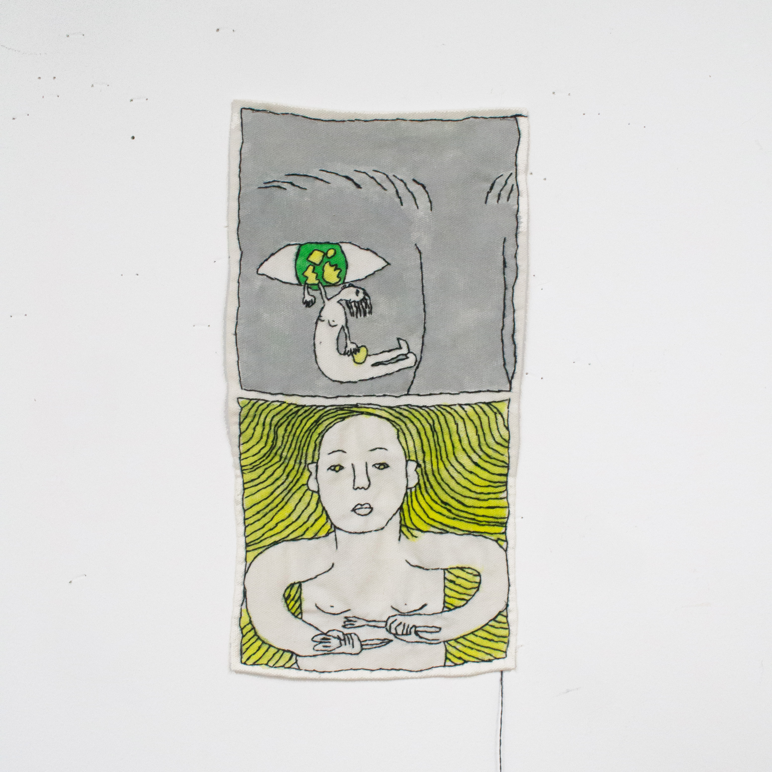 Awaiting Tomorrow, 2025, 26x13.5cm, hand stitches and ink on cotton